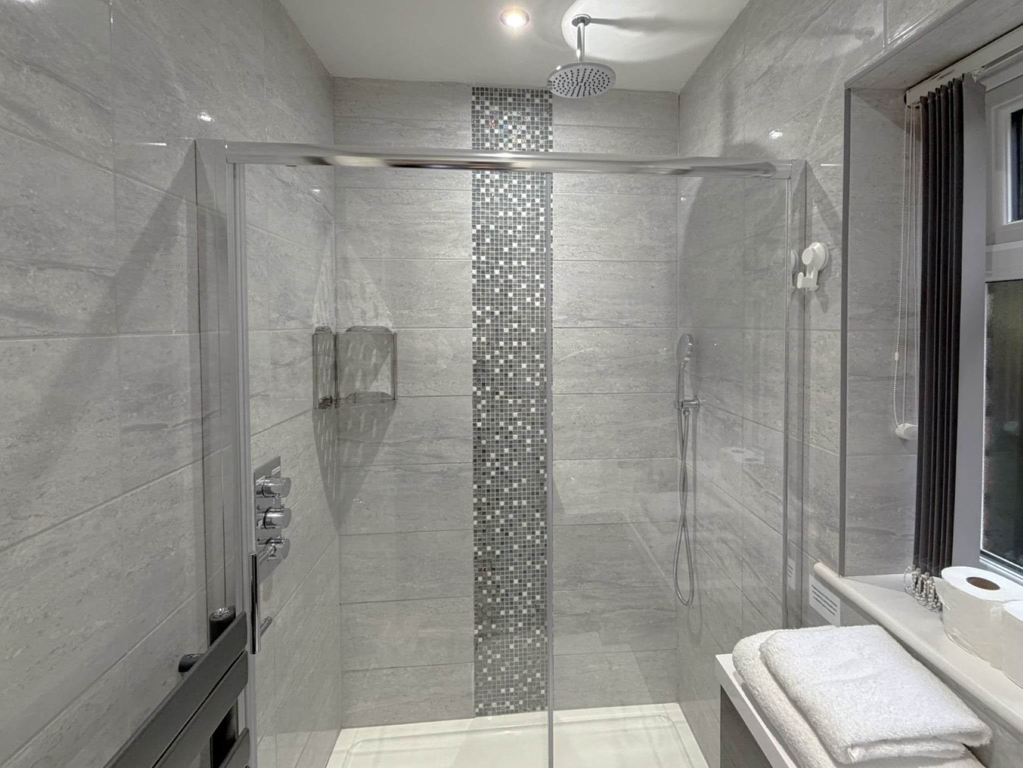 Begehbare Dusche, WC, Waschbecken